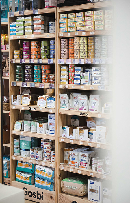 En nuestra clínica disponemos de un pequeño espacio destinado a la venta de alimentación, donde podreis encontrar tanto dietas específicas para patologias ya diagnosticadas como alimentación fisiológica de alta calidad. No nos olvidamos tampoco de ofrecer una pequeña selección de snacks y complementos, para que vuestros peludos disfruten un rato.