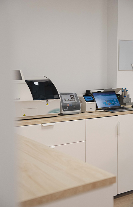 Nuestro laboratorio esta en constante renovación. Actualizamos nuestros equipos para poder realizar cada vez más pruebas en el centro, pudiendo así acelerar los procesos diagnósticos y encontrar el tratamiento mas adecuado para vuestras mascotas. Entre otros, realizamos analisis de sangre, orina, citologias, determinaciones de niveles hormonales.