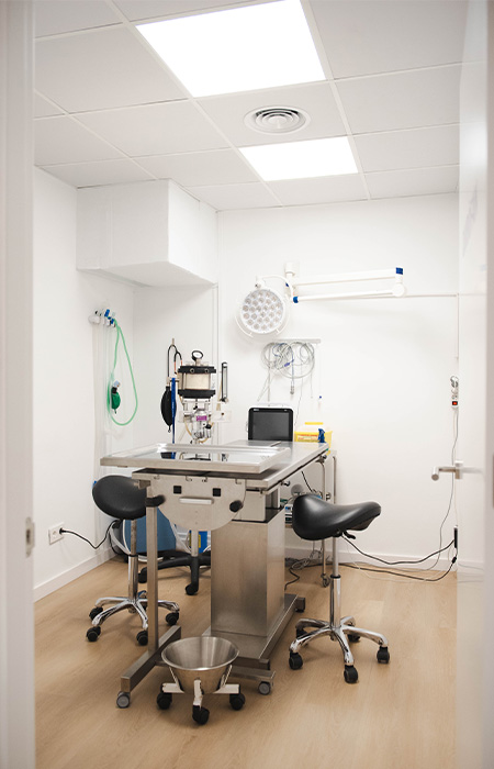 Disponemos de un quirófano equipado con monitor multiparamétrico para mantener controladas en todo momento las constantes vitales de nuestros pacientes. Realizamos intervenciones rutinarias como la castración o la esterilización, pero también en casos de tumores mamarios, infecciones de matriz, entre otros.